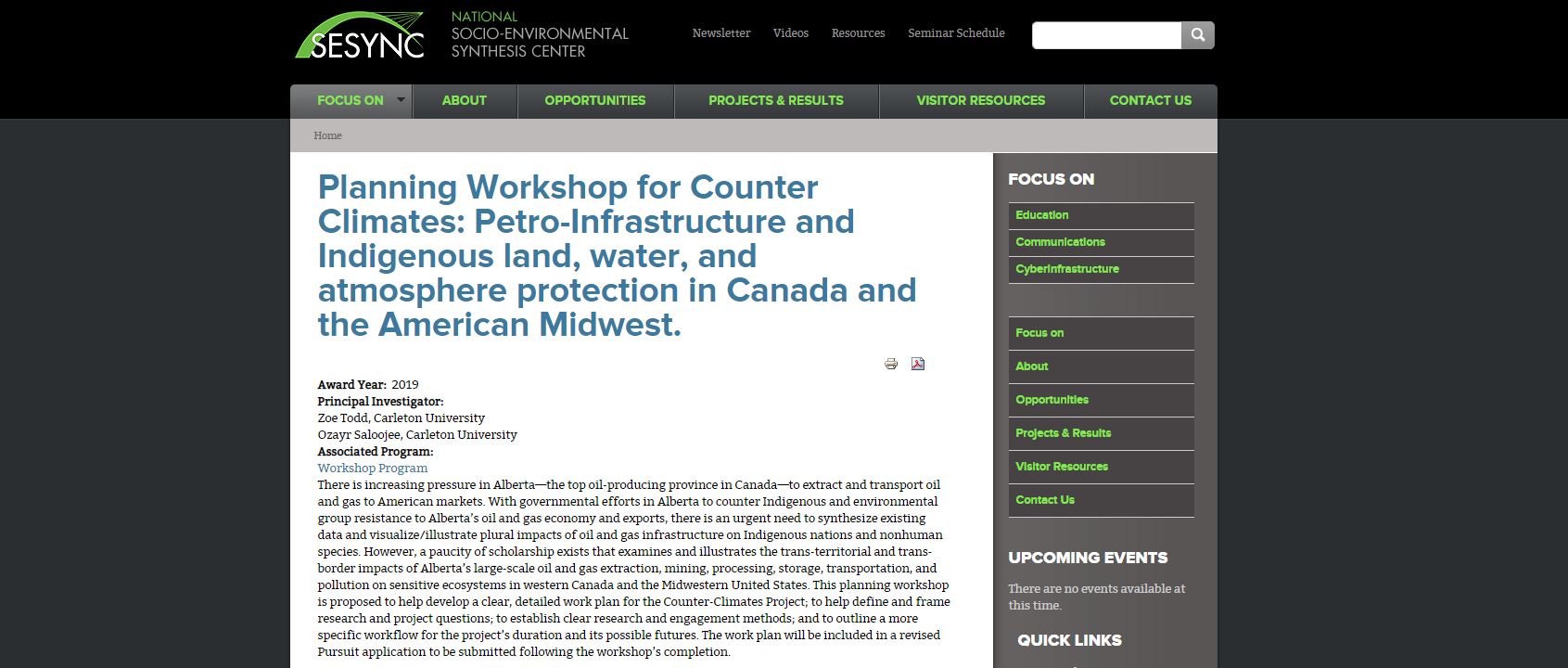 Professor Saloojee served as a Co-PI, with Dr. Zoe Todd, on the Counter Climates Project and workshop (funded by an NSF-Grant hosted by the US based, National Socio-Environmental Synthesis Center at the University of Maryland.